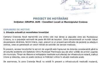 Grupul AUR din Consiliul Local Craiova inițiază demersurile pentru înființarea unui Punct de Urgență Medicală în Craiovița Nouă