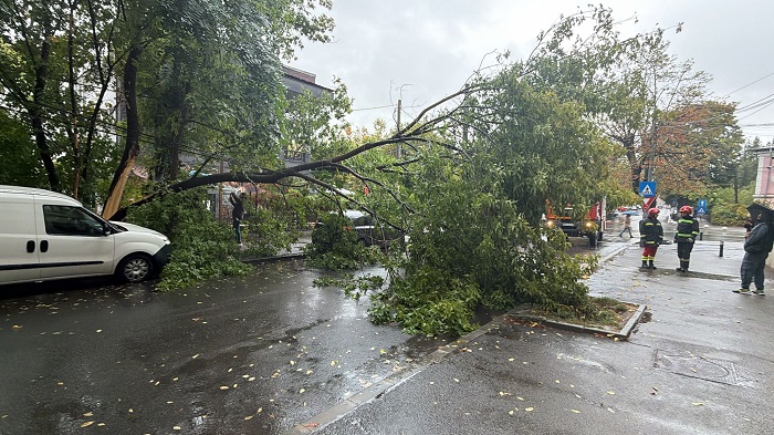 „În acest moment, pompierii din cadrul ISU Dolj intervin în Municipiul Craiova, pe strada Știrbei Vodă, în zona Colegiului Național „Frații Buzești”, pentru îndepărtarea unui copac rupt, căzut pe carosabil. La fața locului acționează o autospecială de descarcerare, iar intervenția are ca scop eliberarea drumului și înlăturarea oricărui pericol pentru pietoni și participanții la trafic”, sună informația oficială livrată de ISU Dolj.